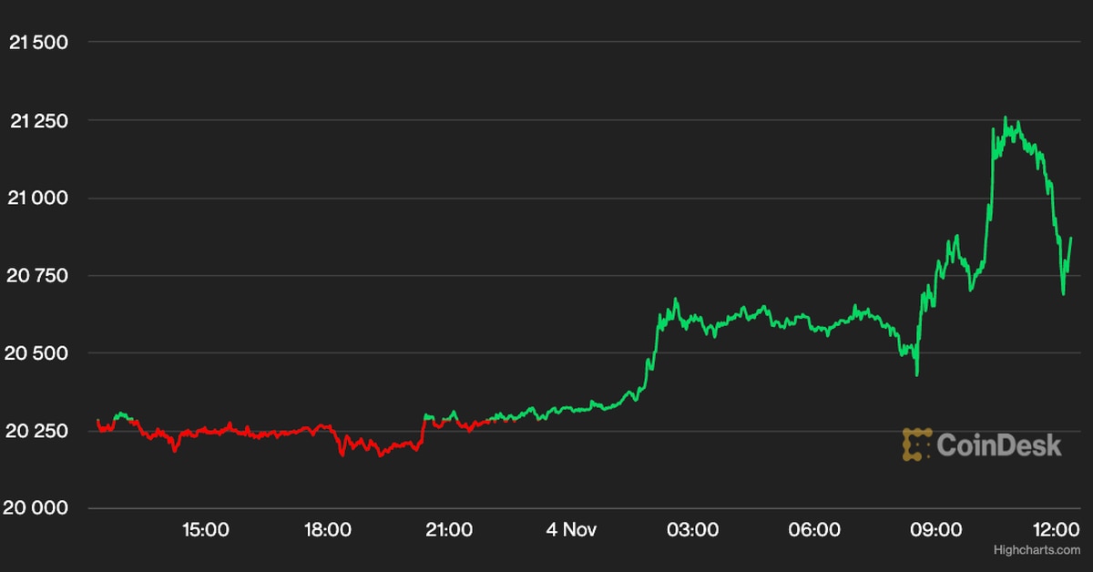 El precio de bitcoin subió hasta US$21.287 en las últimas 24 horas, el valor más alto desde el 13 de septiembre. Source