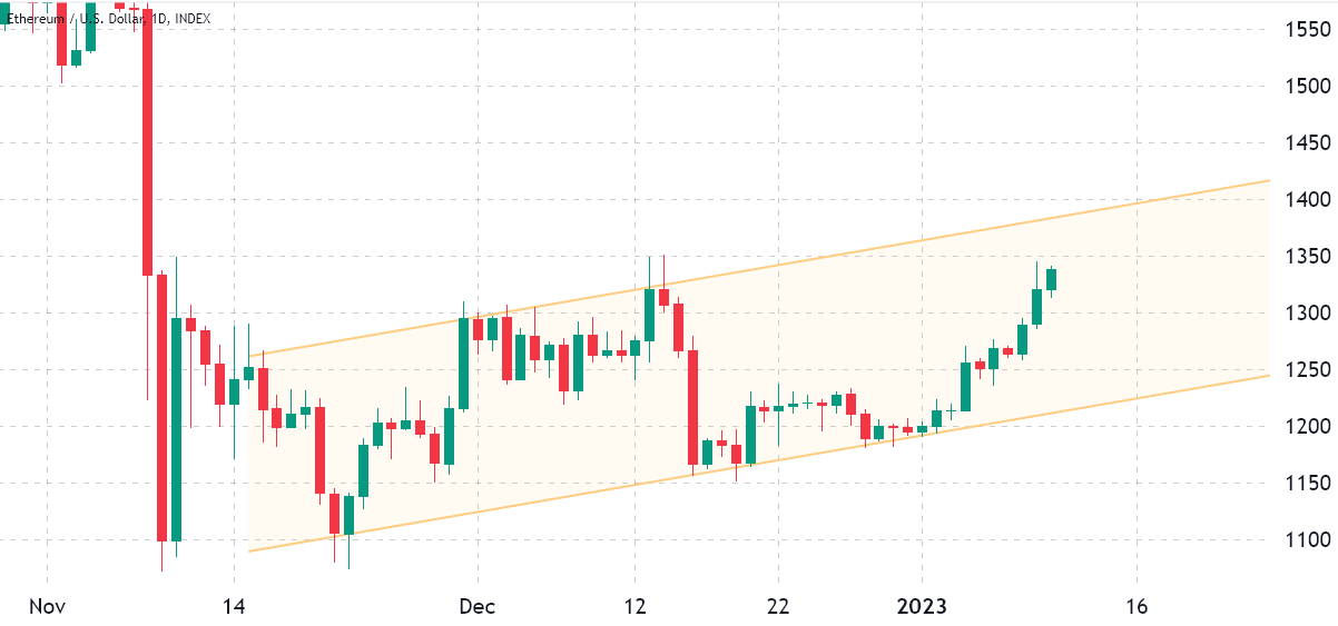 Ethereum price (ETH) gained 10.2% from Jan. 4 to Jan. 10, breaching the $1,300 resistance without much effort, but has the Ether price move cast a light on whether the altcoin is ready to begin a new uptrend. Will Ethereum’s former resistance level turn to support? After testing the $1,200 support on Jan. 1, the eight-week ascending channel has displayed strength, but Ether bulls fear that negative newsflow might break the pattern to the downside. Ether/USD price index, 12-hour. Source: TradingView Despite the positive price trend, the sentiment around Ethereum…