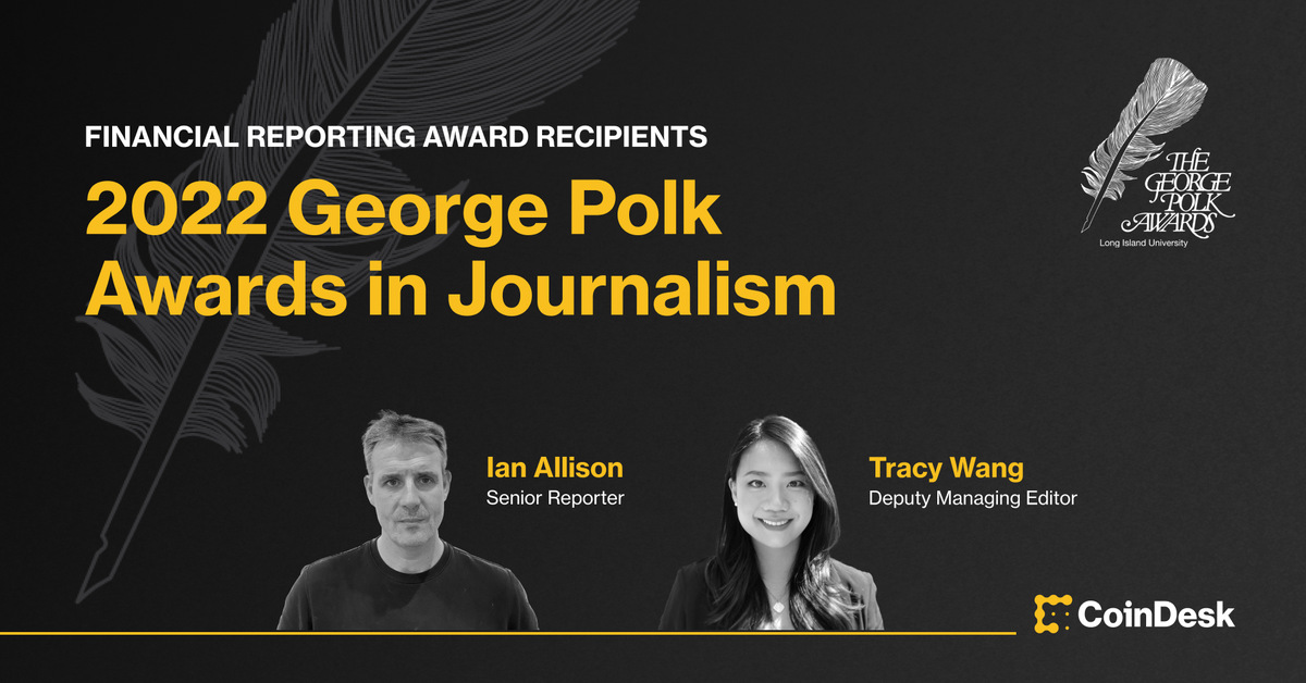 The news that Ian Allison and Tracy Wang are joint recipients of a Polk Award, one of the most prestigious in journalism, for three November scoops that led to the unraveling of FTX’s empire is a source of immense pride for all of us at CoinDesk. Source