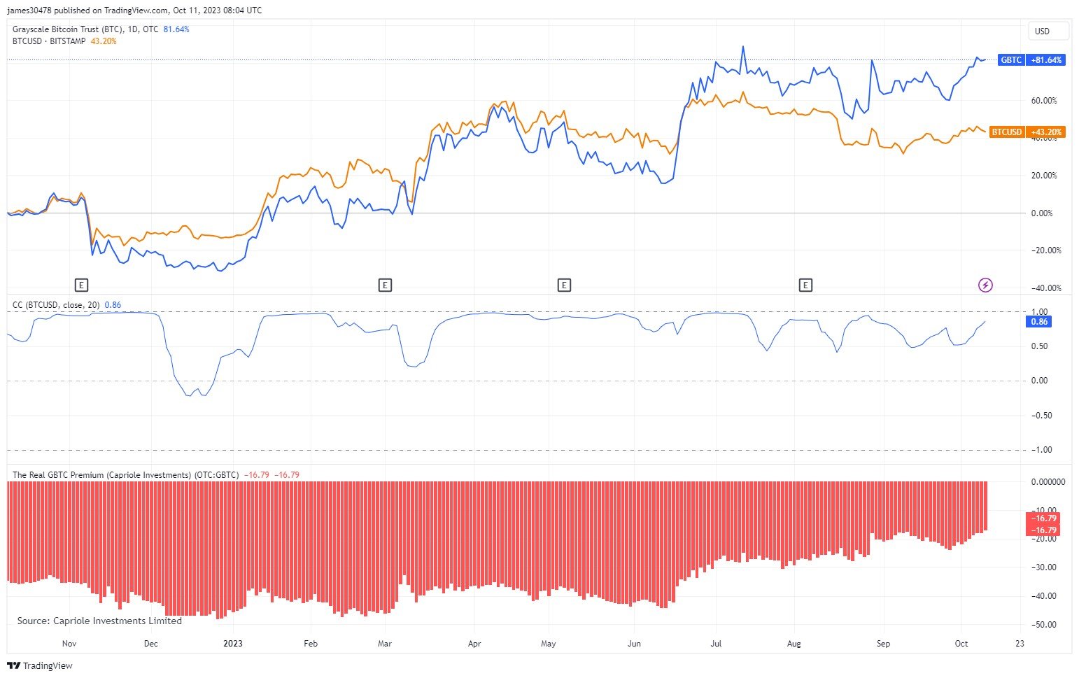 An analyst has explained that a pattern in Grayscale Bitcoin Trust (GBTC) could suggest a potential 50% rise for BTC may be ahead. Bitcoin & GBTC Have Seen A Decoupling In Recent Months In a new post on X, analyst James V. Straten has discussed the correlation between GBTC and BTC that has been present over the years. The Grayscale Bitcoin Trust is an investment vehicle that holds Bitcoin and allows exposure to these holdings through its shares. The chart below shows the trend in the percentage performance of Bitcoin…
