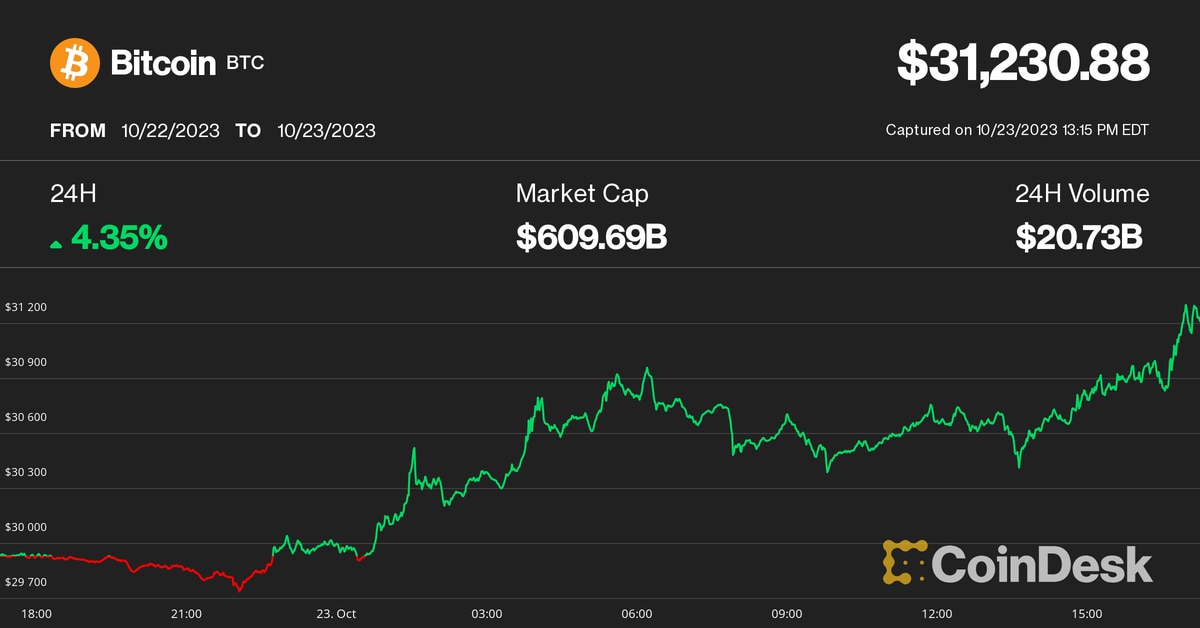 The CoinDesk Bitcoin Trend Indicator BTI, which measures the directional momentum and strength in bitcoin’s price action, switched to “significant uptrend” as BTC strengthened its footing above the $30,000 level, Todd Groth, head of research at CoinDesk Indices, noted. Source