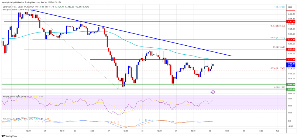 Este artículo también está disponible en español. Ethereum price struggled to continue higher above $3,220. ETH is now consolidating losses and might face resistance near the $3,220 zone. Ethereum started a fresh decline below the $3,120 zone. The price is trading below $3,180 and the 100-hourly Simple Moving Average. There is a key bearish trend line forming with resistance at $3,220 on the hourly chart of ETH/USD (data feed via Kraken). The pair could start another decline if it stays below the $3,200 level. Ethereum Price Faces Resistance Ethereum price…