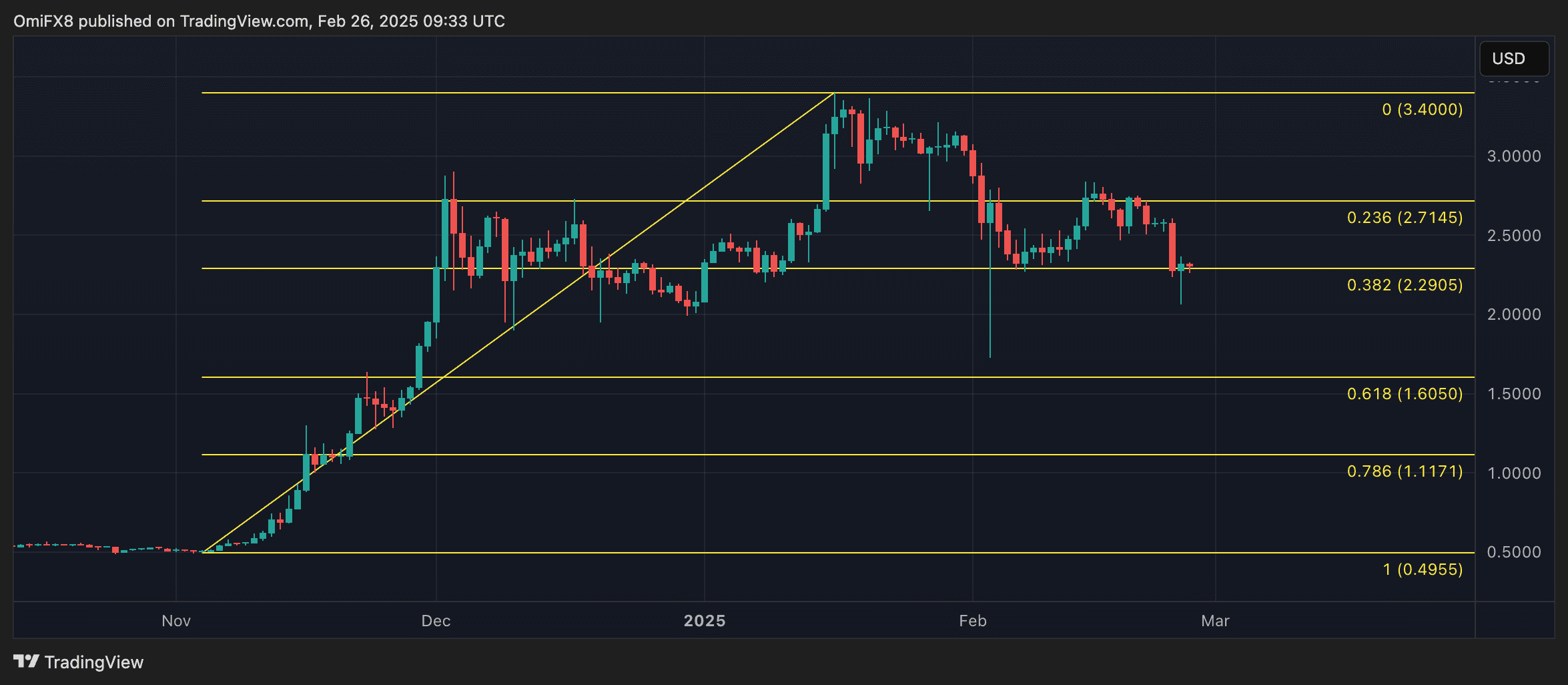 Payments-focused cryptocurrency XRP is down but not out, whereas the outlook for dogecoin (DOGE) appears grim, based on an analysis of Fibonacci retracement levels. XRP reached a peak of $3.40 in mid-January and has since entered a downtrend, with the price dropping 25% this month to $2.28, according to data from TradingView and CoinDesk. While the sell-off has been steep, it corresponds to only a 38.2% Fibonacci retracement of the rally that started at Nov. 4’s low of 49.5 cents through the Jan. 16 high of $3.40. A retracement is…