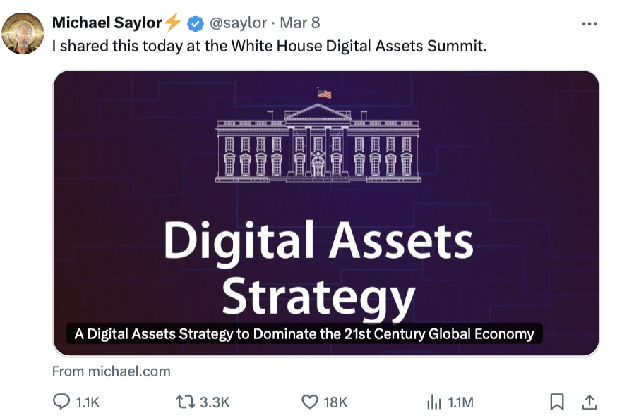Strategy founder Michael Saylor has proposed that the United States government aims to acquire up to 25% of Bitcoin’s total supply over the next decade for its Strategic Bitcoin Reserve. “Acquire 5-25% of the Bitcoin network in trust for the nation through consistent, programmatic daily purchases between 2025 and 2035, when 99% of all BTC will have been issued,” Saylor wrote in a document titled “A Digital Assets Strategy to Dominate the 21st Century Global Economy.” Saylor reiterates to the US government, “Never sell your Bitcoin” Saylor presented the document…