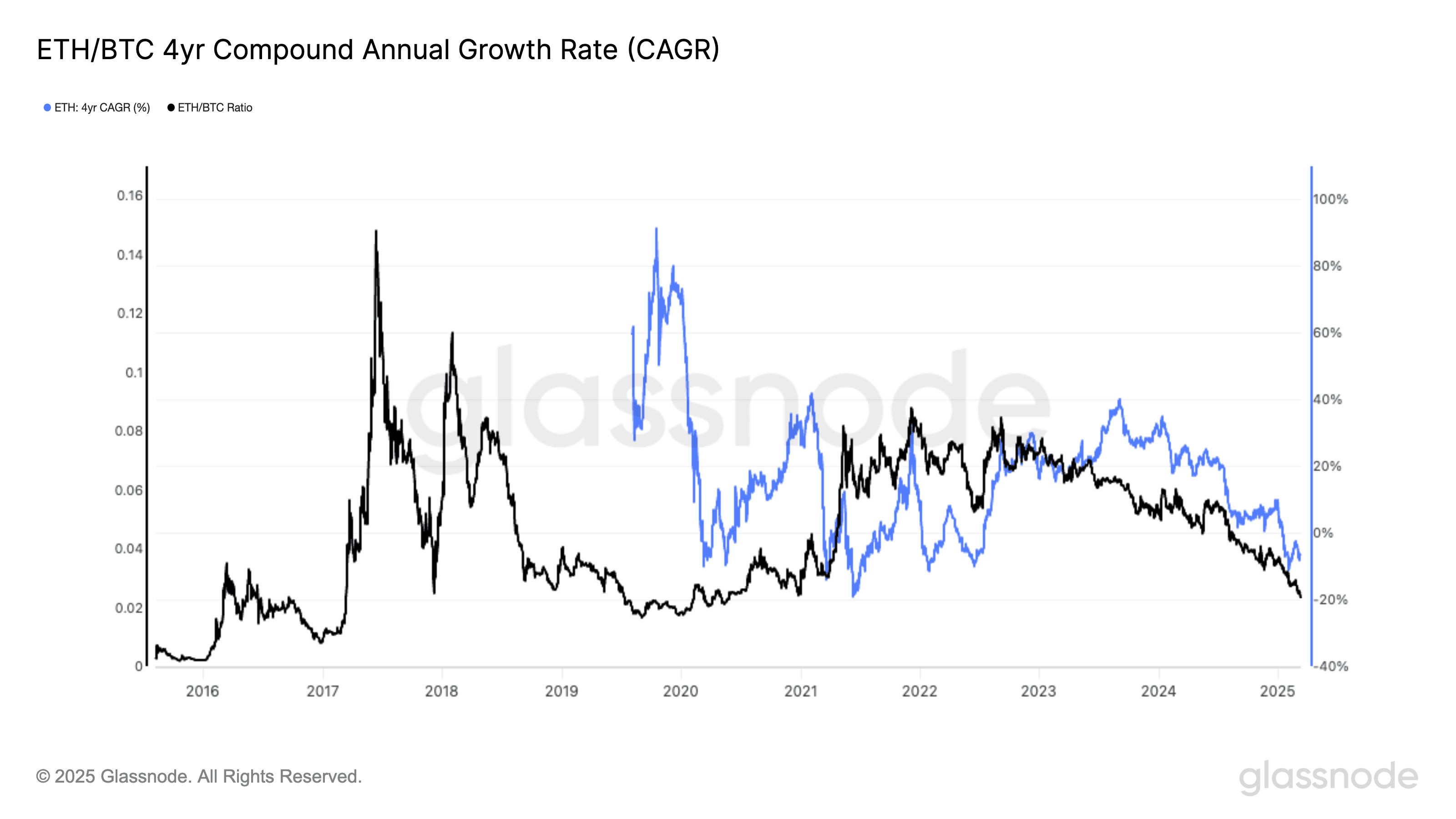 BTC’s Four-Year Compound Annual Growth Rate Drops to Record Low of 8%