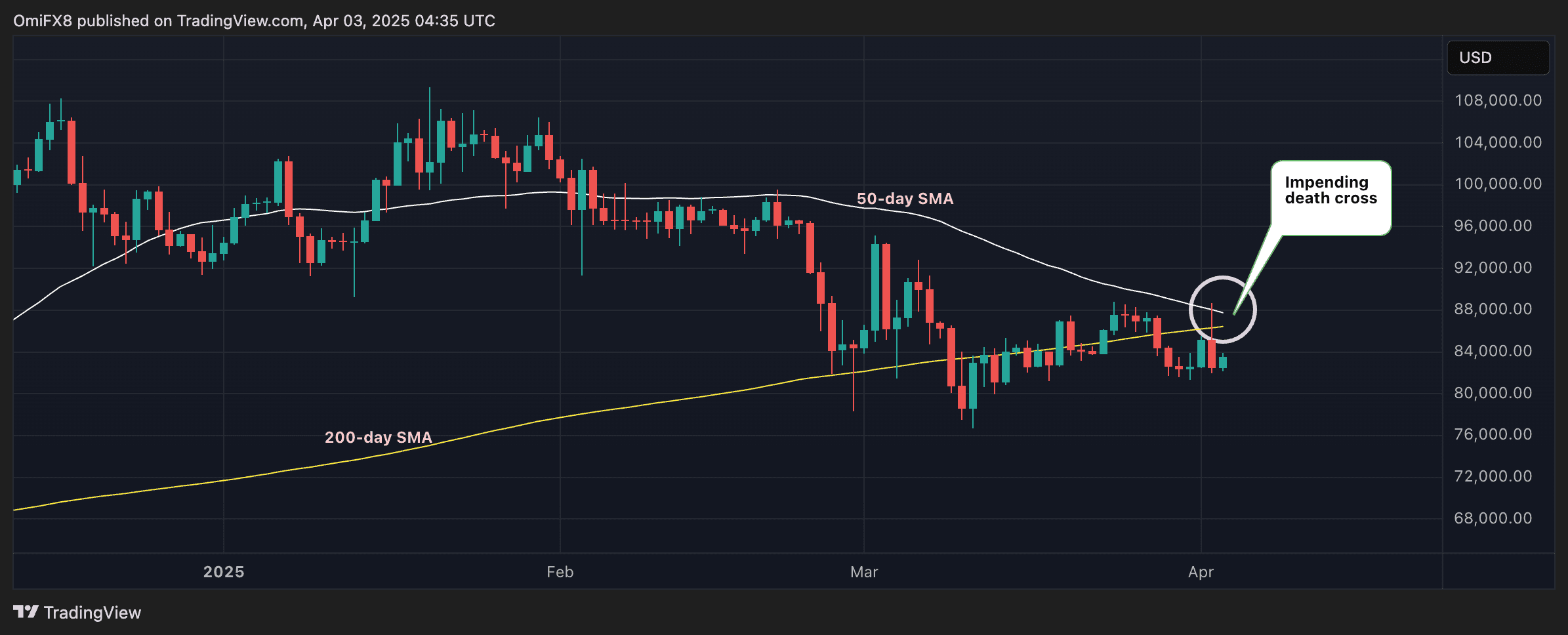 BTC Nears Death Cross, CNY Tumbles with Asian Markets After Trump Tariffs Put Focus on China’s Response