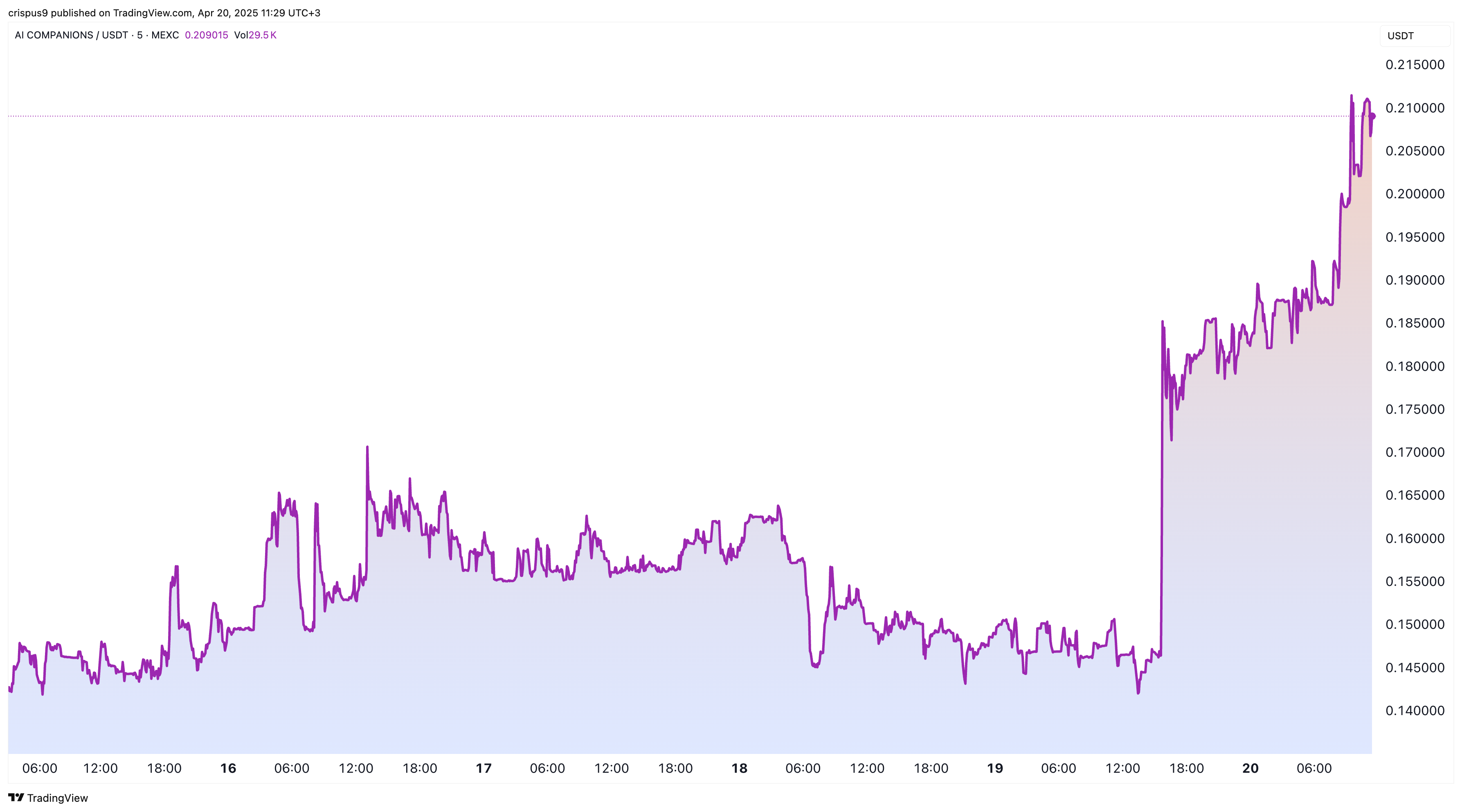 Top artificial intelligence tokens were among the best performers this weekend, as investors bought the dip following a key report from CoinGecko. AI Companions (AIC) tokens jumped by over 40% to $0.2120, its highest point since March 30 and 70% above its lowest point this month. AI Companions price chart | Source: crypto.news Artificial Superintelligence Alliance (FET) price rose for four consecutive weeks, reaching a high of $0.5730, its highest swing since March 26. Render (RNDR) token jumped to $4.32, also up by double digits from the year-to-date low. Worldcoin…
