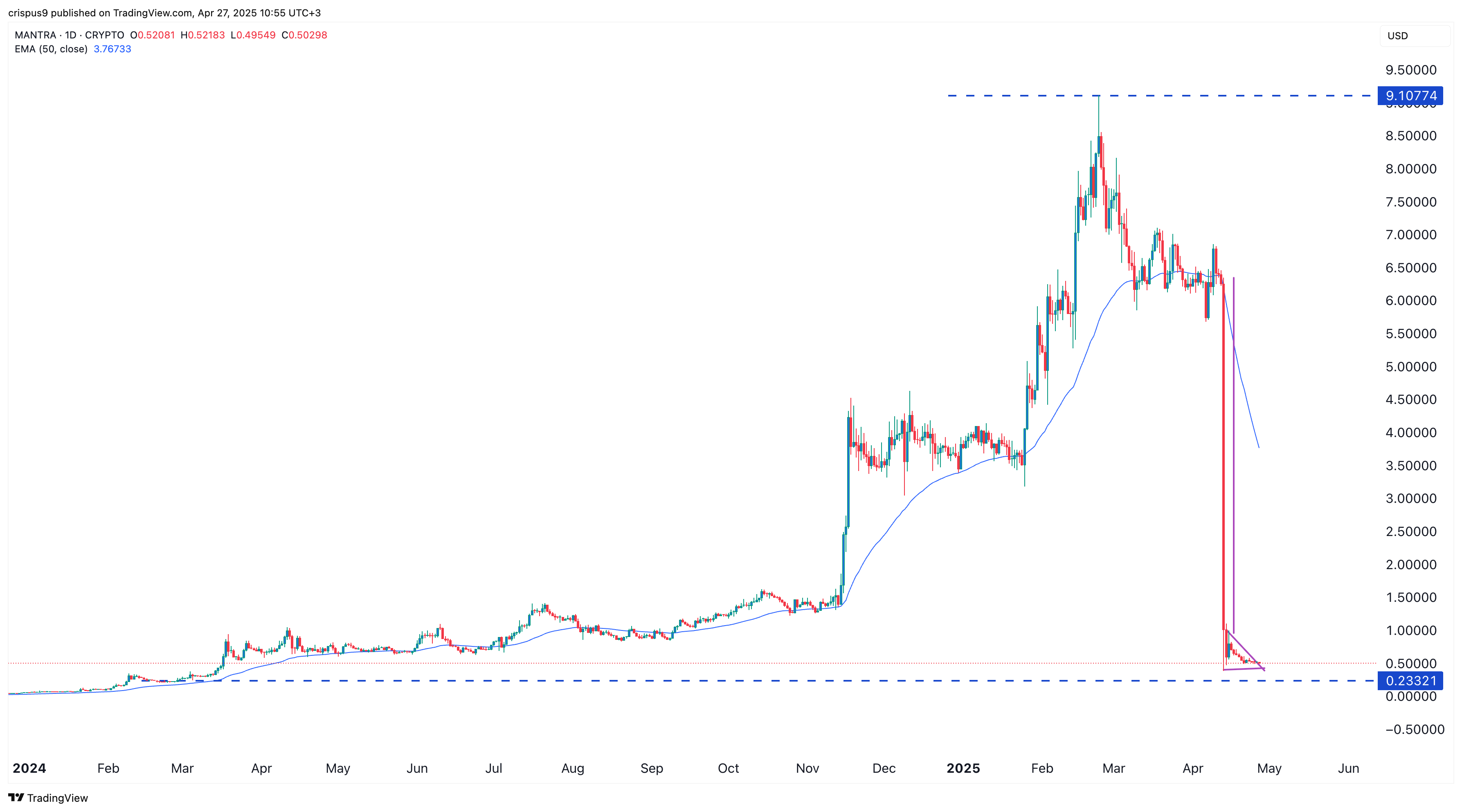 Mantra price continues to languish at its lowest level since March 2024, even as Bitcoin and most altcoins rally. Mantra (OM), a major player in the Real World Asset tokenization, traded at $0.5086 on Sunday, down 95% from its highest level this year. This performance indicates that investors are still skeptical about the coin after its crash two weeks ago. While the management has attributed the collapse to forced liquidations by an exchange, users believe it was because of insiders dumping tokens. They question why Mantra was the only coin…