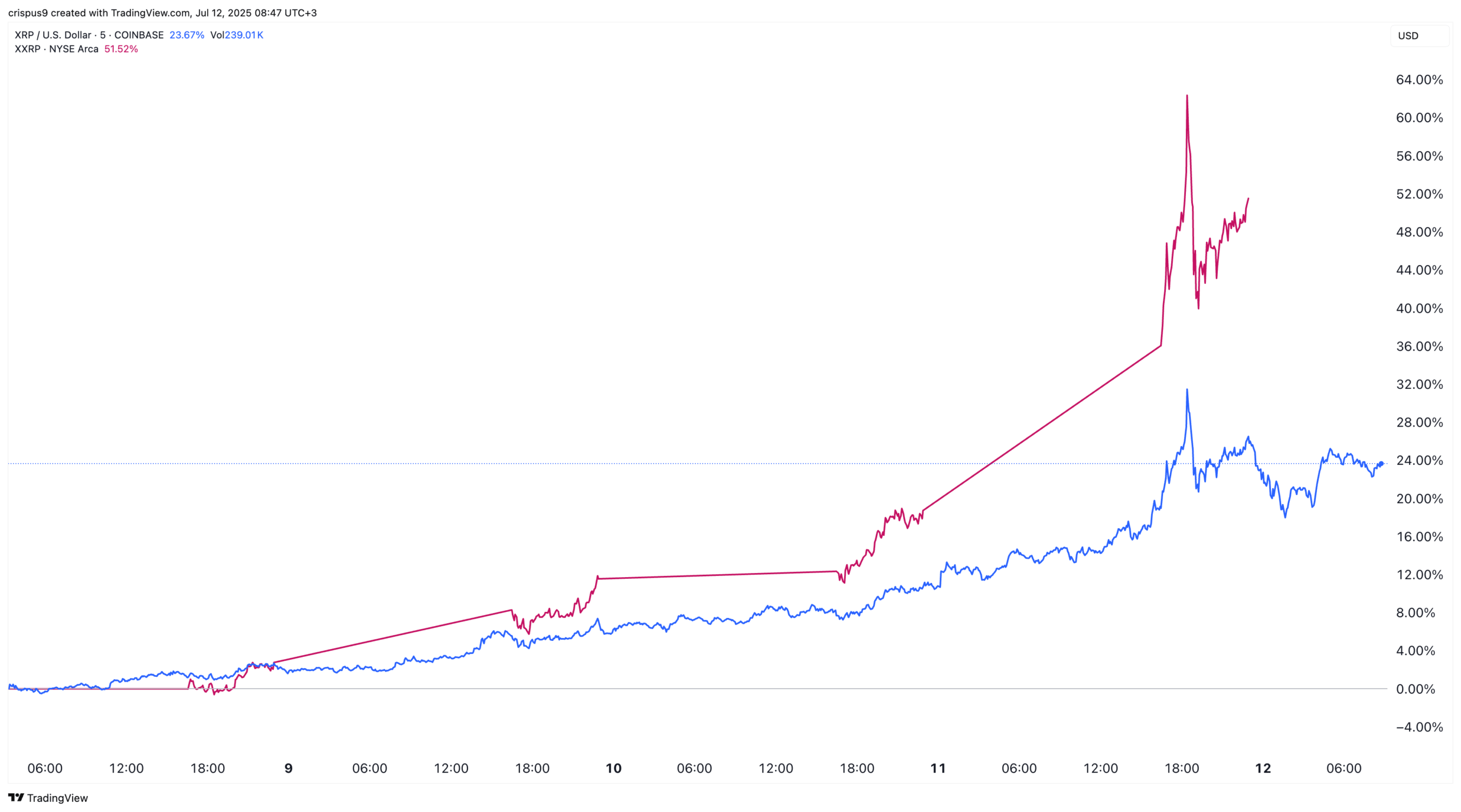 XRP just posted its biggest weekly rally in months, surging nearly 80% from April lows to hit a five-month high on Friday. The rally mirrors broader strength across the crypto market, as investors pile into risk assets amid fresh regulatory momentum and a record-breaking run for Bitcoin. The Ripple (XRP) token jumped as high as $2.9695 on July 11, its highest level since March 2, driven by three key factors: Bitcoin’s (BTC) surge to an all-time high of $118,300, accelerating inflows into the new leveraged XRP exchange traded fund, or…