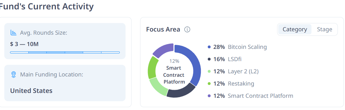 ABCDE is a $400 million fund, with 28% of its investments in Bitcoin (BTC) scaling technology, 16% in Ethereum liquid staking derivatives finance (LSDFi) infrastructure, and an additional 12% invested in L2s, restaking and smart contract platforms, Cryptorank data shows.