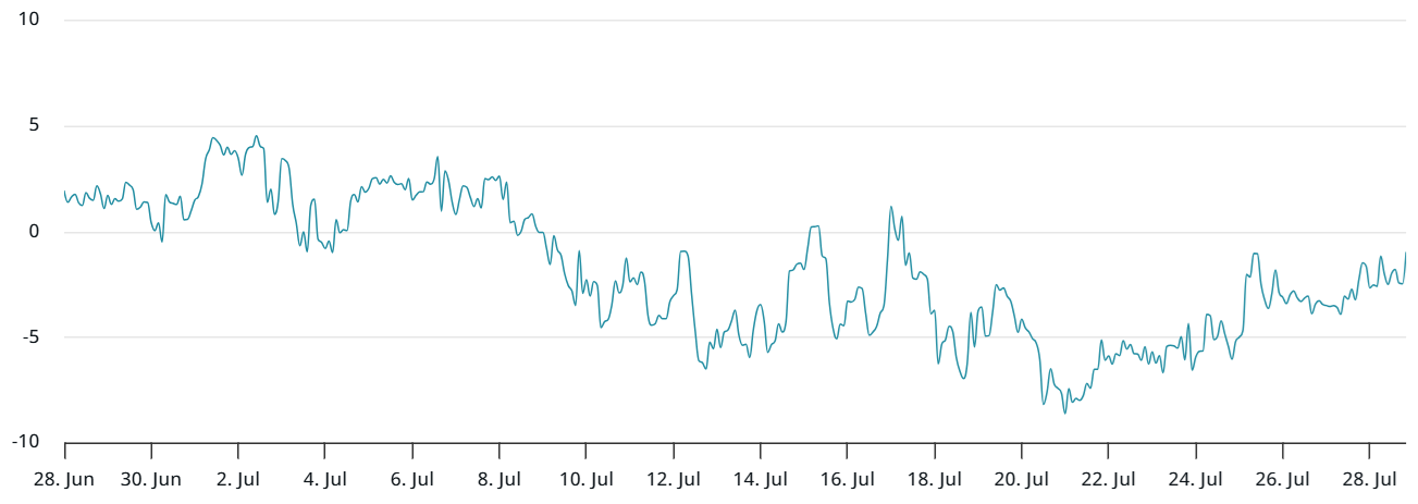 Global markets remain focused on United States import tariff negotiations, as analysts warn that failure to reach a deal could sharply increase recession risks. Despite a trade agreement reached with Europe on Monday, China’s deadline looms on Aug. 12. As a result, traders appear more inclined to hold cash or allocate to short-term bonds.