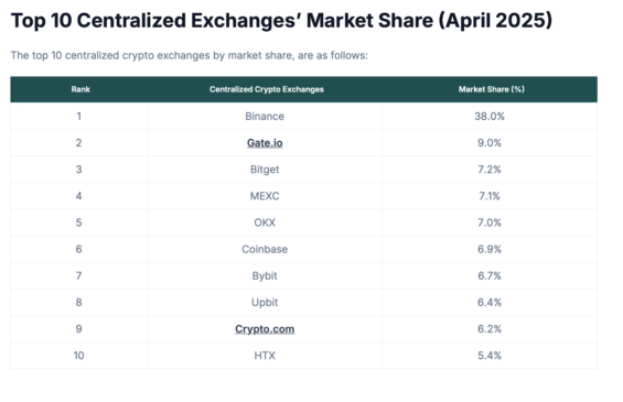 The result of these regulatory challenges is visible in Binance’s market metrics. From a peak of over 55% in global trading volume in early 2023, the exchange’s share fell to around 38% by April 2025, a decline of over 30%.