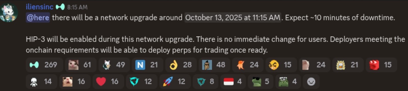 On Monday, Hyperliquid Improvement Proposal 3 (HIP-3) came into force, allowing permissionless, builder-deployed perpetual futures contract listings.