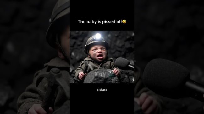 When asked why he’s doing such hard work, an angry baby coal miner explains that he’s forced to swing a pickaxe because his parents’ bank account is completely empty.