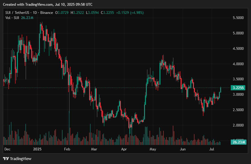 One of the best crypto to buy for 2025, Sui (SUI) is a Layer-1 blockchain that expands its DeFi and NFT ecosystem.