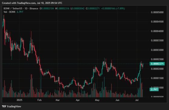 One of the best crypto coins for 2025, Bonk (BONK) is a Solana-based meme token that grew rapidly following FTX’s collapse. It serves primarily as a community incentive token without significant utility beyond ecosystem engagement.