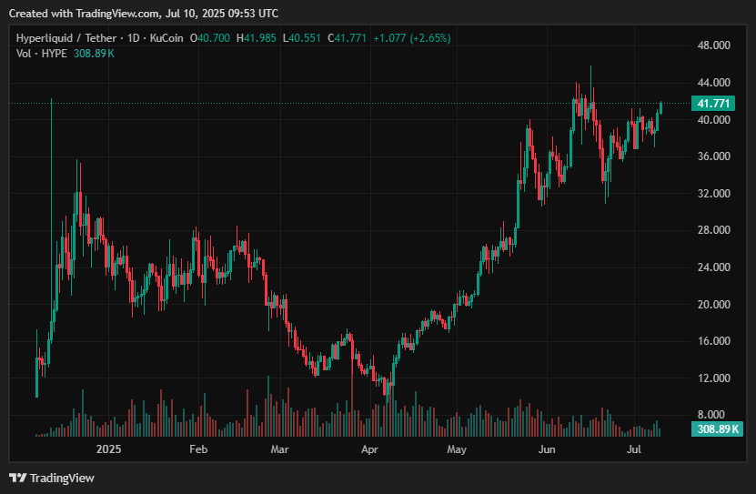 Hyperliquid (HYPE) is a layer-2 infrastructure coin designed to increase liquidity in the metaverse and game-fi. It provides staking rewards and is supported by institutional capital.