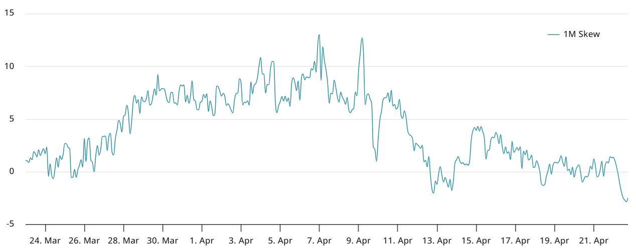 In neutral markets, the Bitcoin futures premium typically ranges between 5% and 10% to compensate for the longer settlement period. At present, the annualized premium stands at 6%, which is not considered particularly bullish, even though BTC appreciated by $6,840 between April 20 and April 22. Some analysts interpret this as a sign that Bitcoin is beginning to decouple from the stock market.