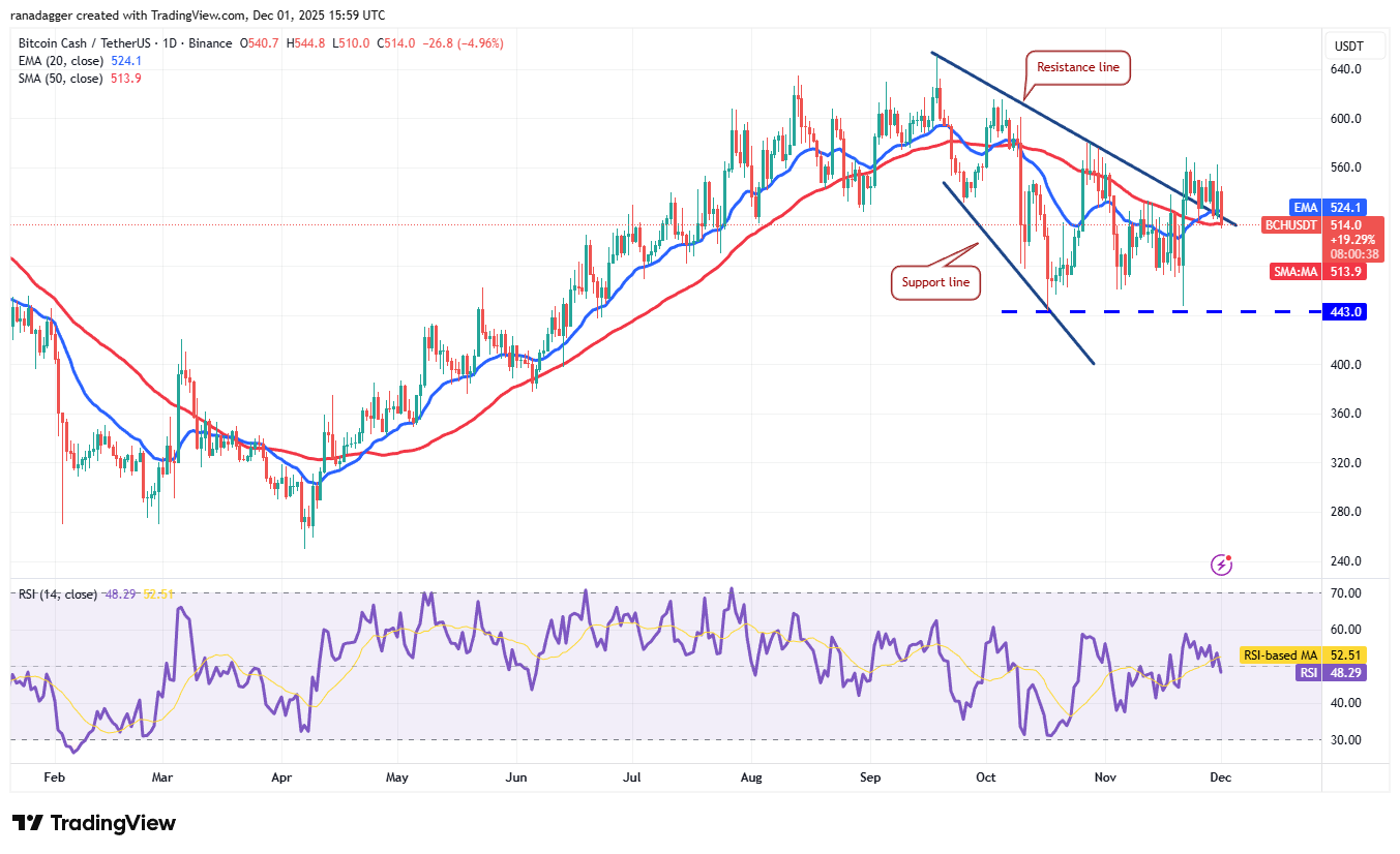Buyers attempted to push Bitcoin Cash (BCH) above the $568 resistance on Sunday, but the bears held their ground.