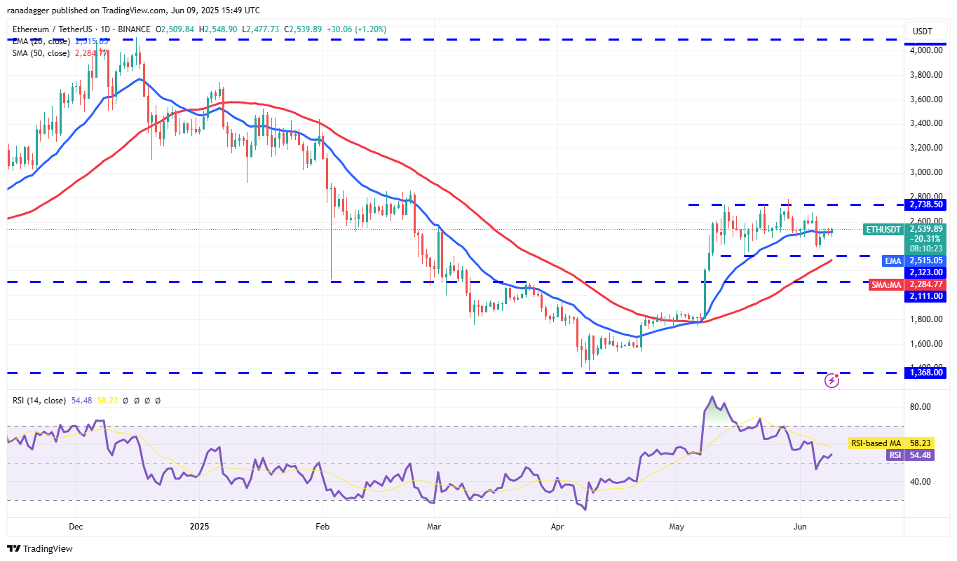 If the price maintains above the 20-day EMA ($2,515), the ETH/USDT pair could rally to $2,738. This is a critical resistance for the bears to defend because if the level gets taken out, the pair could soar to $3,000 and then to $3,153.