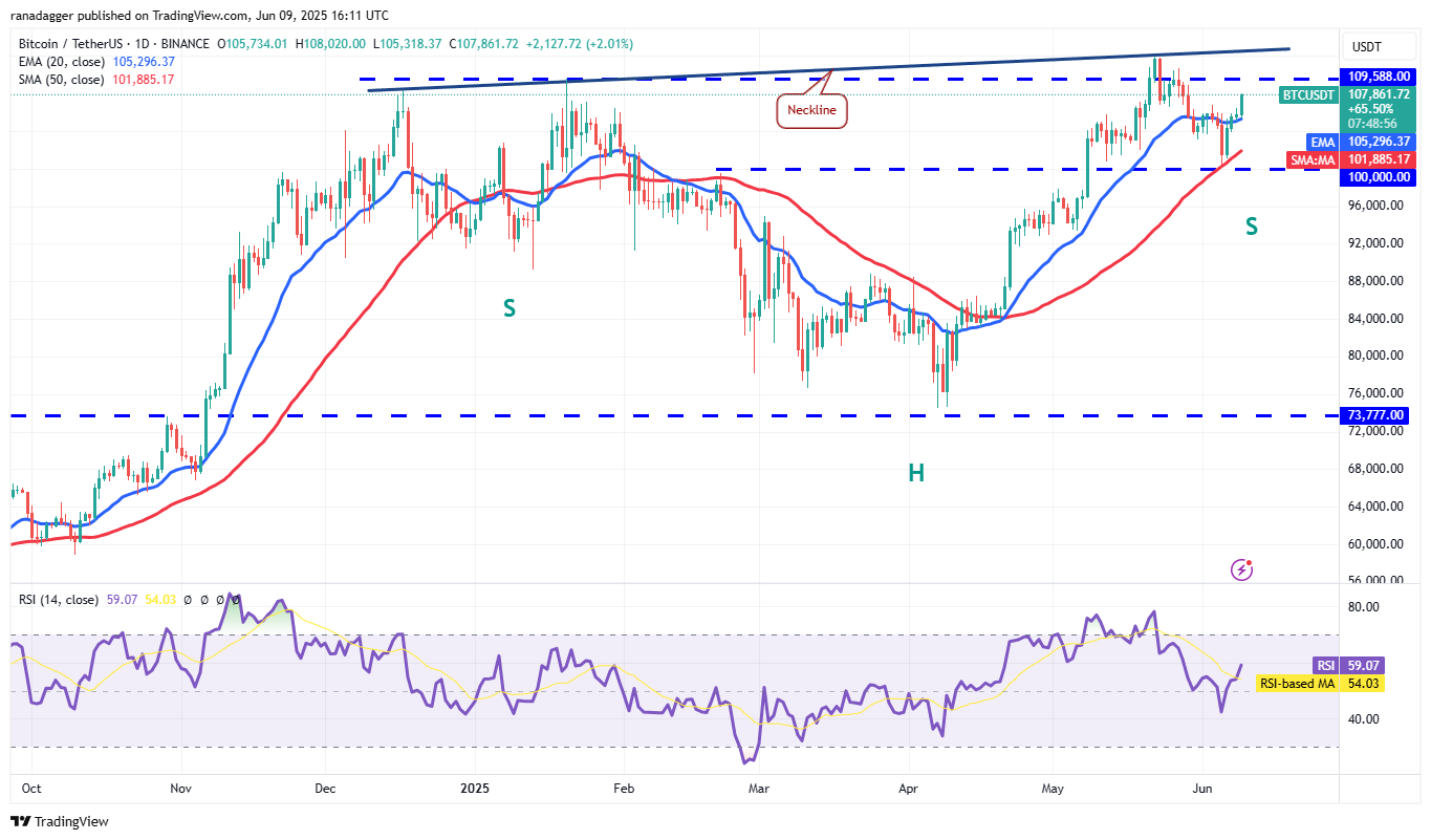 Bitcoin rose above the 20-day EMA ($105,296) on June 7, and the bulls cleared the overhead hurdle at $106,794 on June 9.