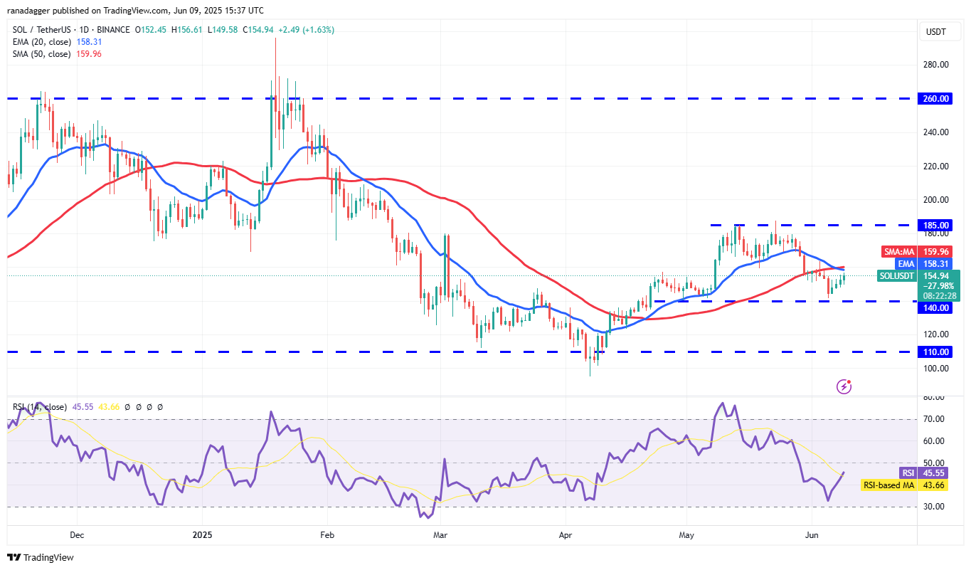 Solana (SOL) turned up from the $140 support on June 5, but the recovery is likely to face resistance at the 20-day EMA ($158).