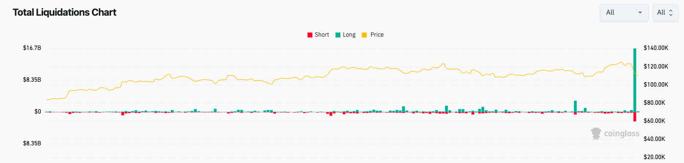 Bitcoin and altcoins reel from the biggest liquidation event in crypto history.