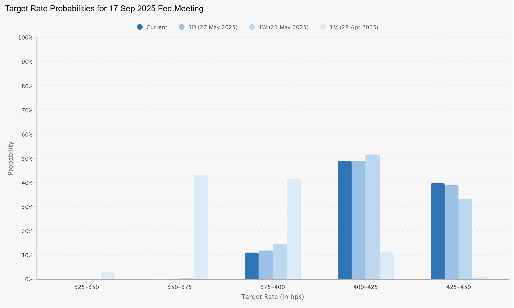 Informal sentiment likewise continued to deteriorate on the day, with prediction service Kalshi seeing just two cuts in 2025, down from four in early April.
