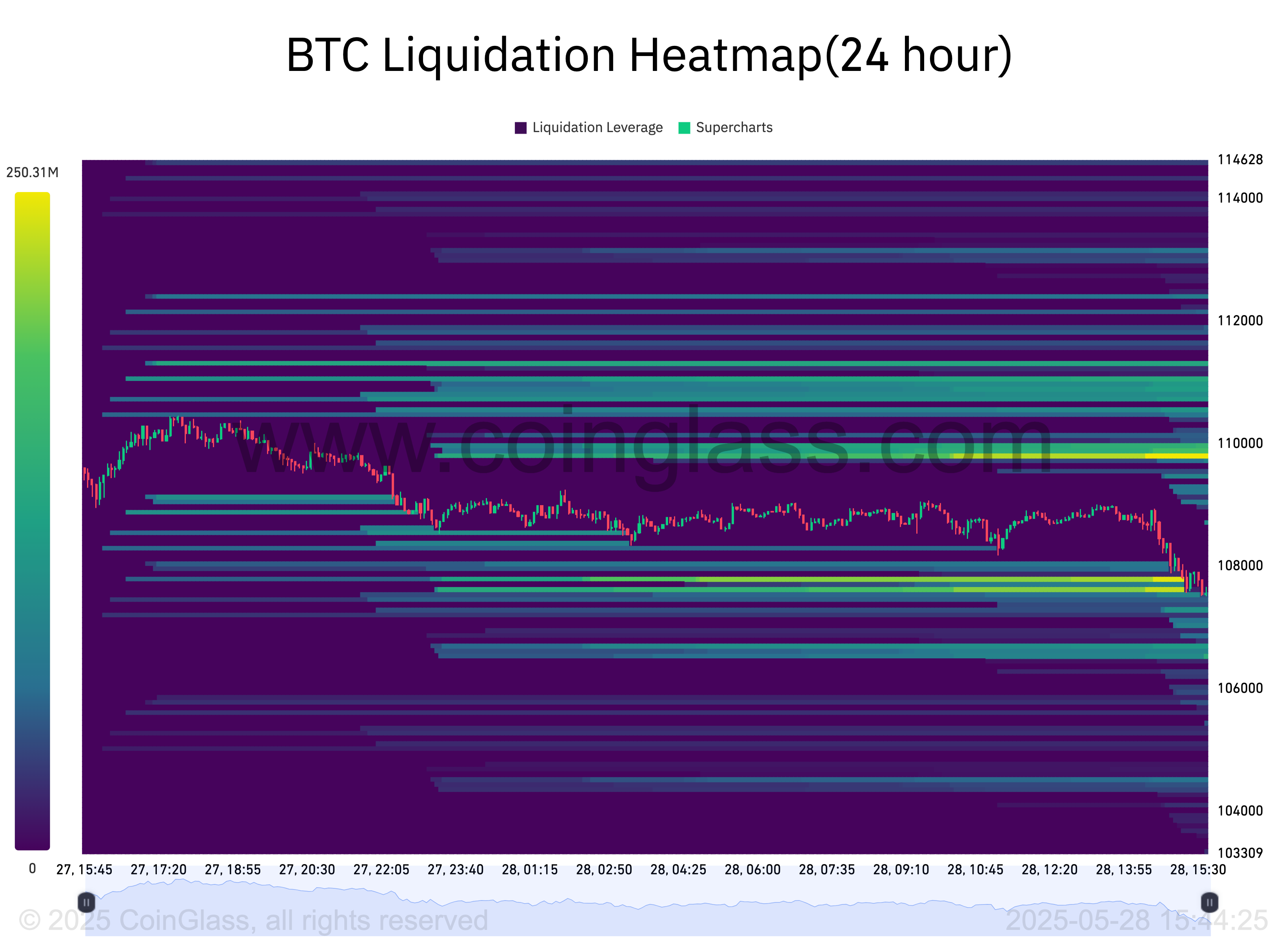 Data from Cointelegraph Markets Pro and TradingView showed BTC/USD dipping below $108,000 to challenge multiday lows.