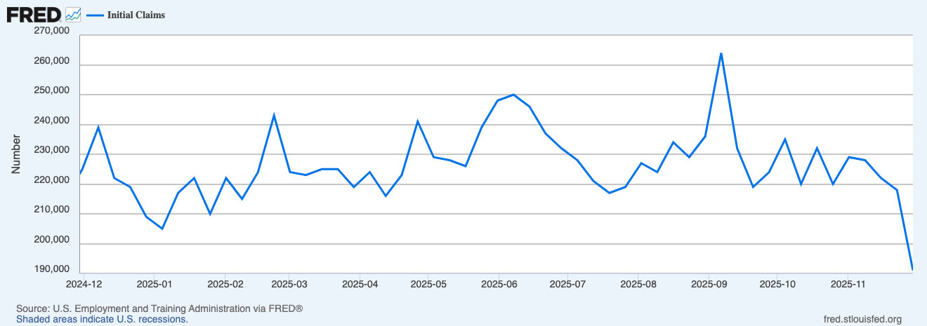US weekly initial jobless claims through Nov. 29. Source: St. Louis Fed