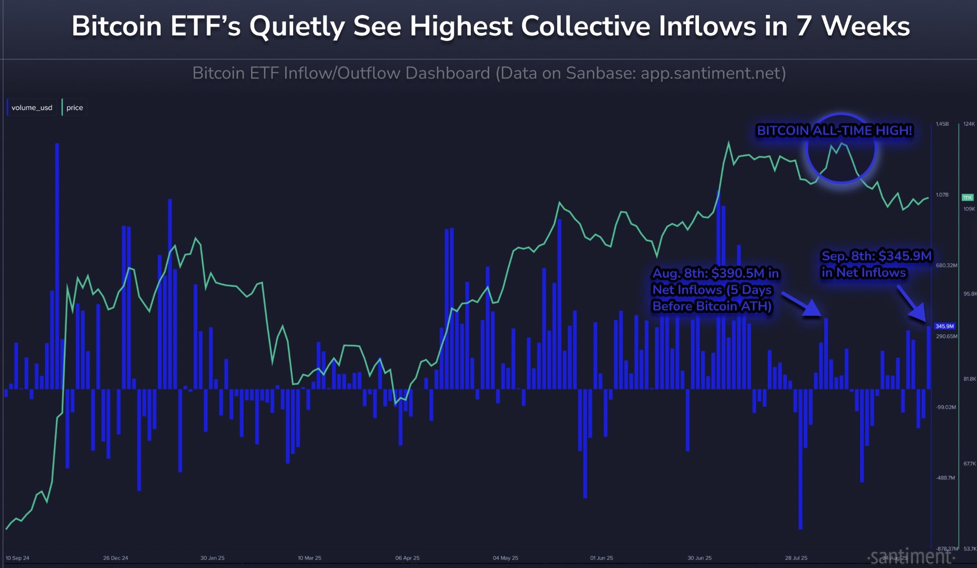 “Money is moving back into Bitcoin ETFs at a rapid rate as retailers impatiently drop out of crypto,” said market intelligence firm Santiment in a Wednesday X post, adding:
