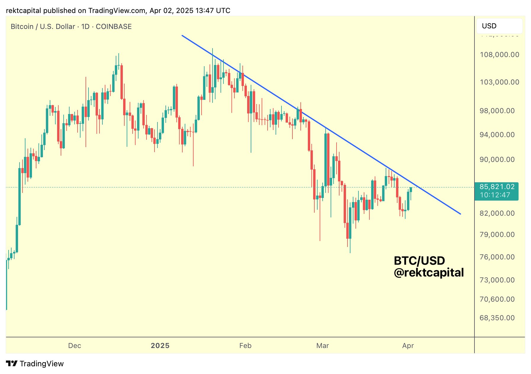 Rekt Capital flagged more bullish news in the making, thanks to BTC/USD attempting to break out of an extended downtrend on daily timeframes.