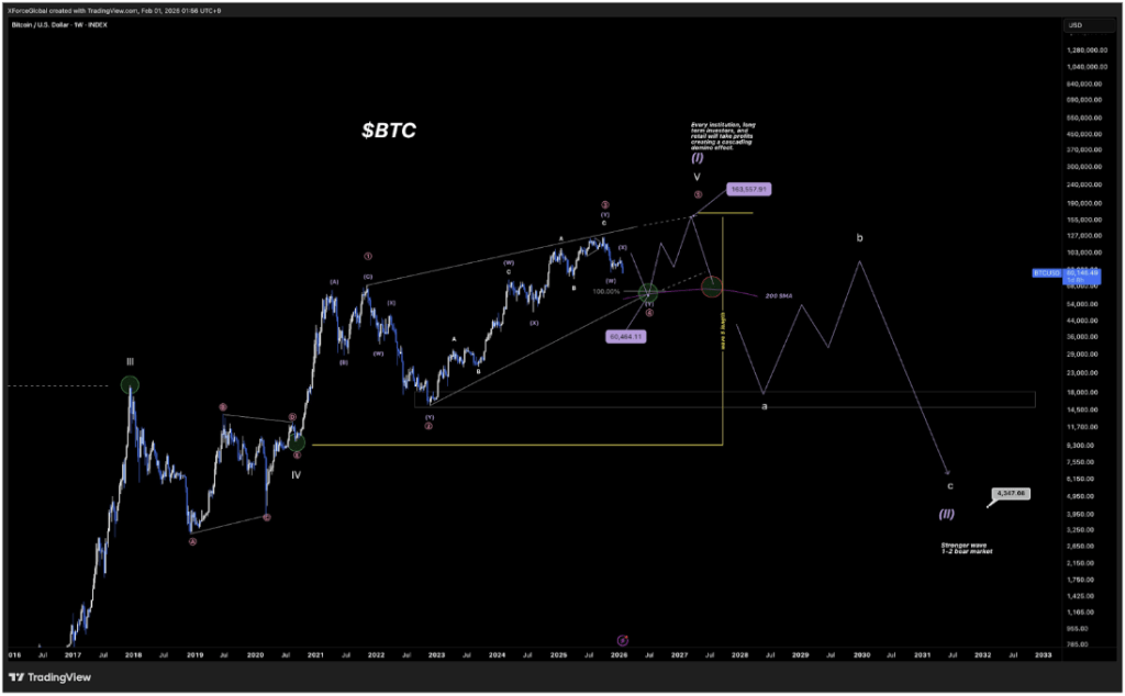Now that the larger structure is now compromised, XForceGlobal says it makes sense to adopt a shorter-timeframe bearish bias while reorganizing the next wave count. The outlook is that Bitcoin continues its decline to at least $60,000 before rebounding to stage a return above $100,000.
