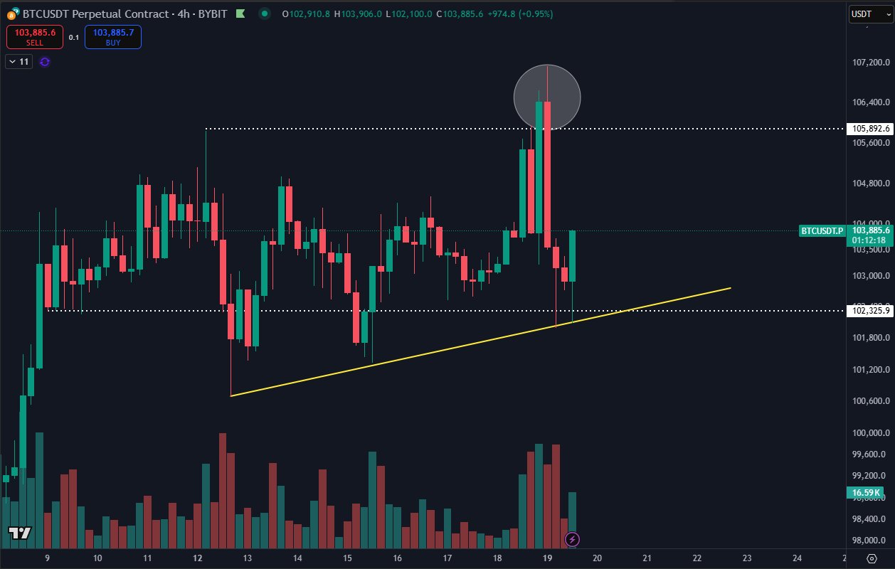 Popular trader Daan Crypto Trades flagged $102,000 and $106,000 as the levels to watch above and below spot price.
