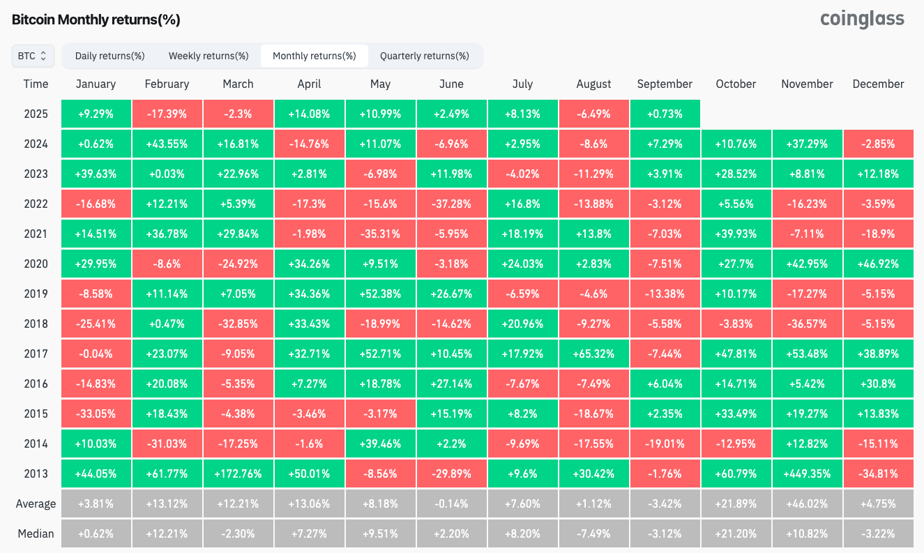 September, he stressed, is synonymous with poor performance on BTC/USD, which has delivered average losses of 3.5% since 2013.