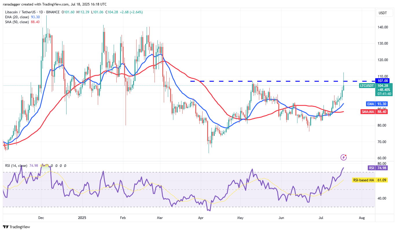Litecoin (LTC) broke above the $107 resistance on Friday, but the bulls could not sustain the higher levels as seen from the long wick on the candlestick.