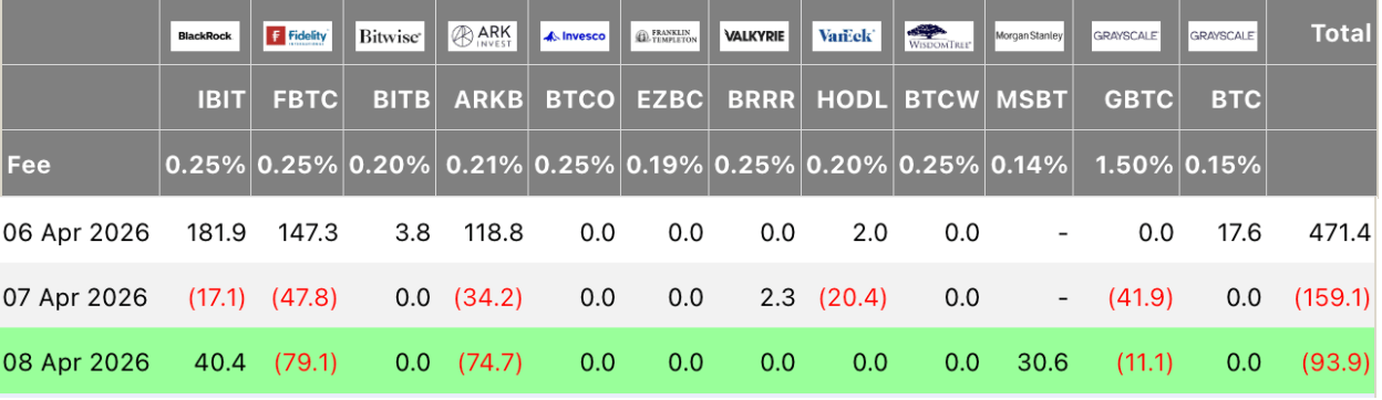 A new entrant arrived with momentum for bitcoin ETFs, but it wasn’t enough to flip the continued funds exit. Bitcoin ETFs extended their outflow streak, shedding $93.9 million even as Morgan Stanley’s much-anticipated MSBT made a strong first impression.