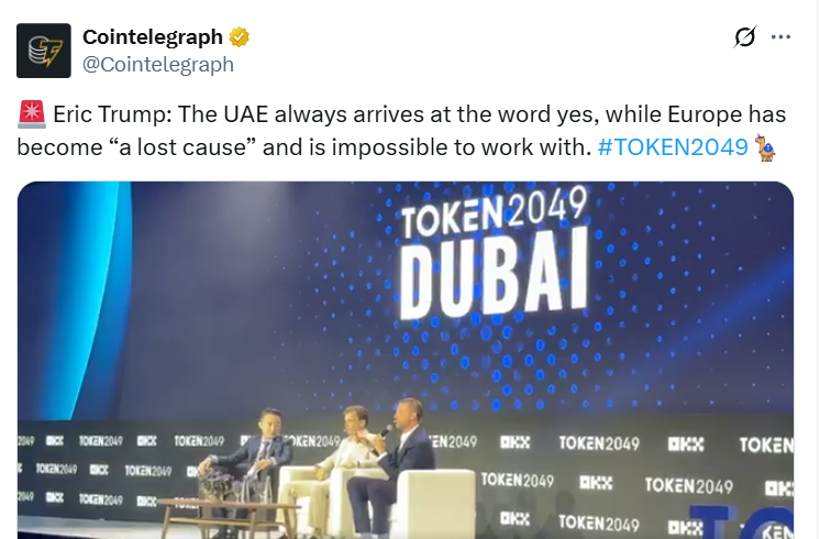Eric Trump: USD1 will be used for $2 billion MGX investment in Binance