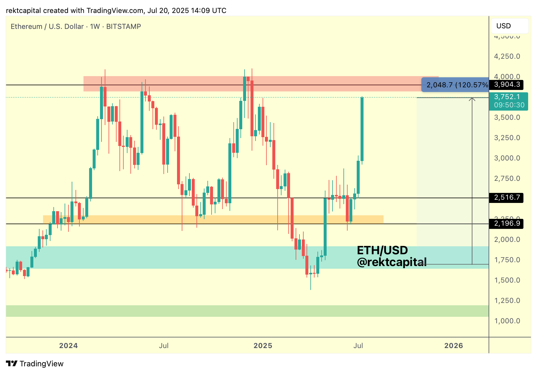 ETH/USD 1-week chart. Source: Rekt Capital/X