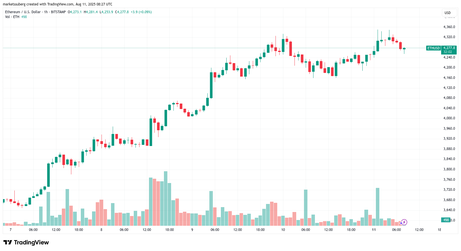 ETH/USD one-hour chart with volume data. Source: Cointelegraph/TradingView