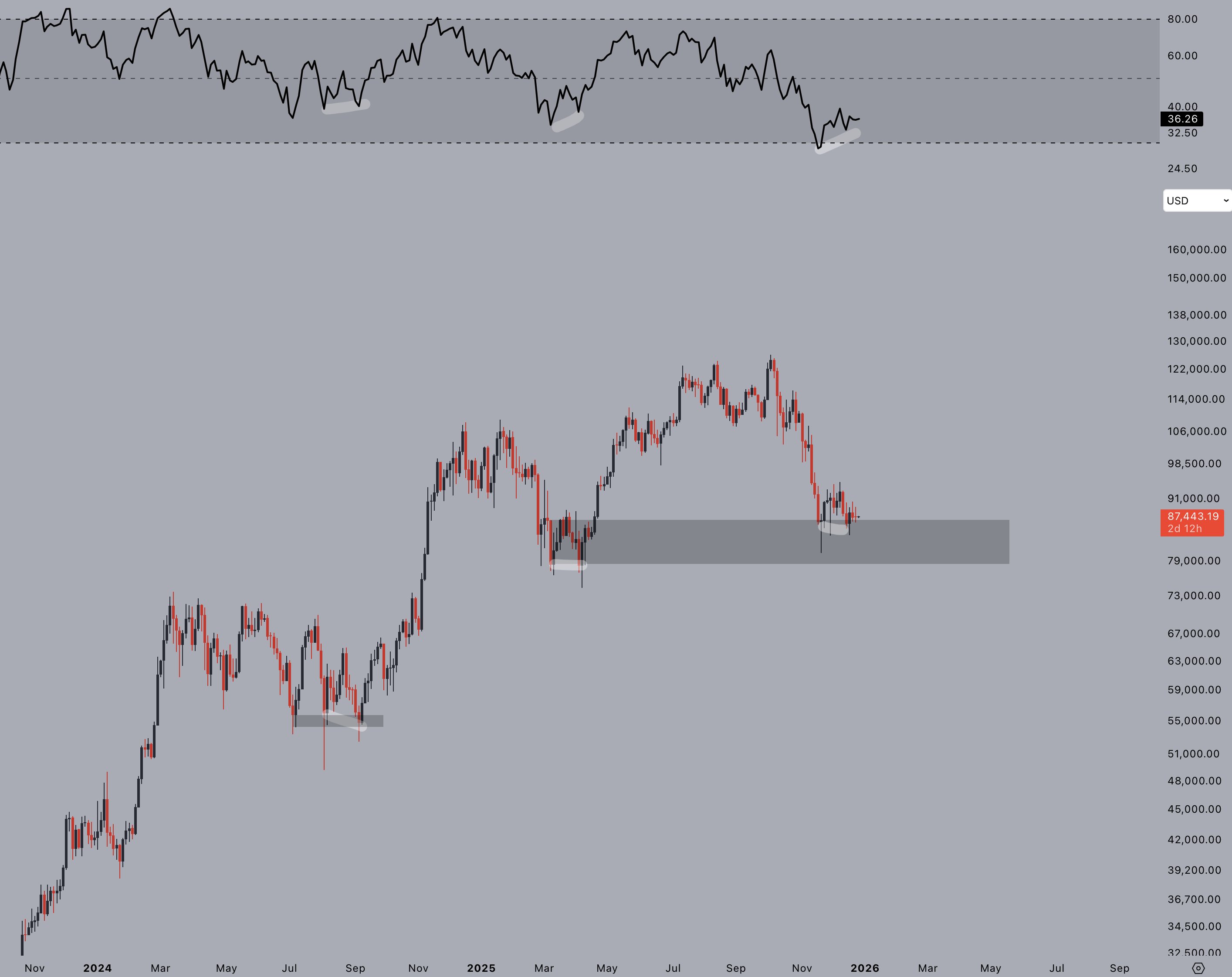 Data from TradingView showed BTC price action nearing $88,000 after two days of barely any volatility.