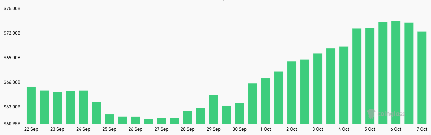 Bitcoin futures open interest across major exchanges currently stands at $72 billion, down 2% from Monday but still at a robust level. A deep and liquid derivatives market is crucial for attracting flows from global hedge funds and asset allocators, even when that includes demand for short positions.