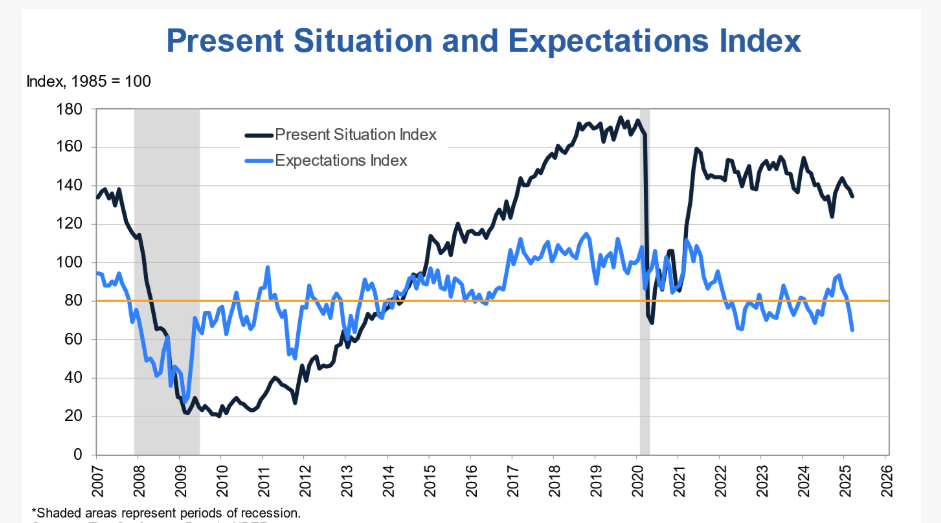 Consumer confidence present situation and future expectations data. Source: The Conference Board