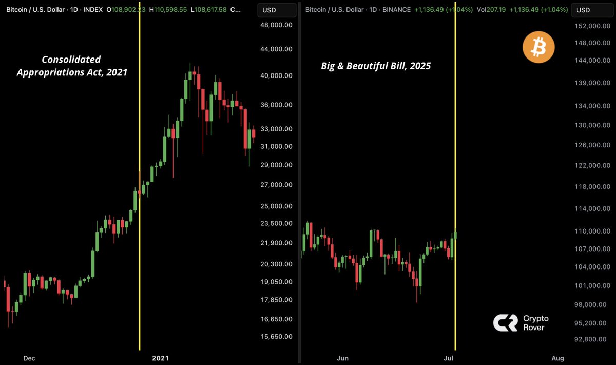 If the same price action were to follow the Big Beautiful Bill, Bitcoin would end up passing $150,000.