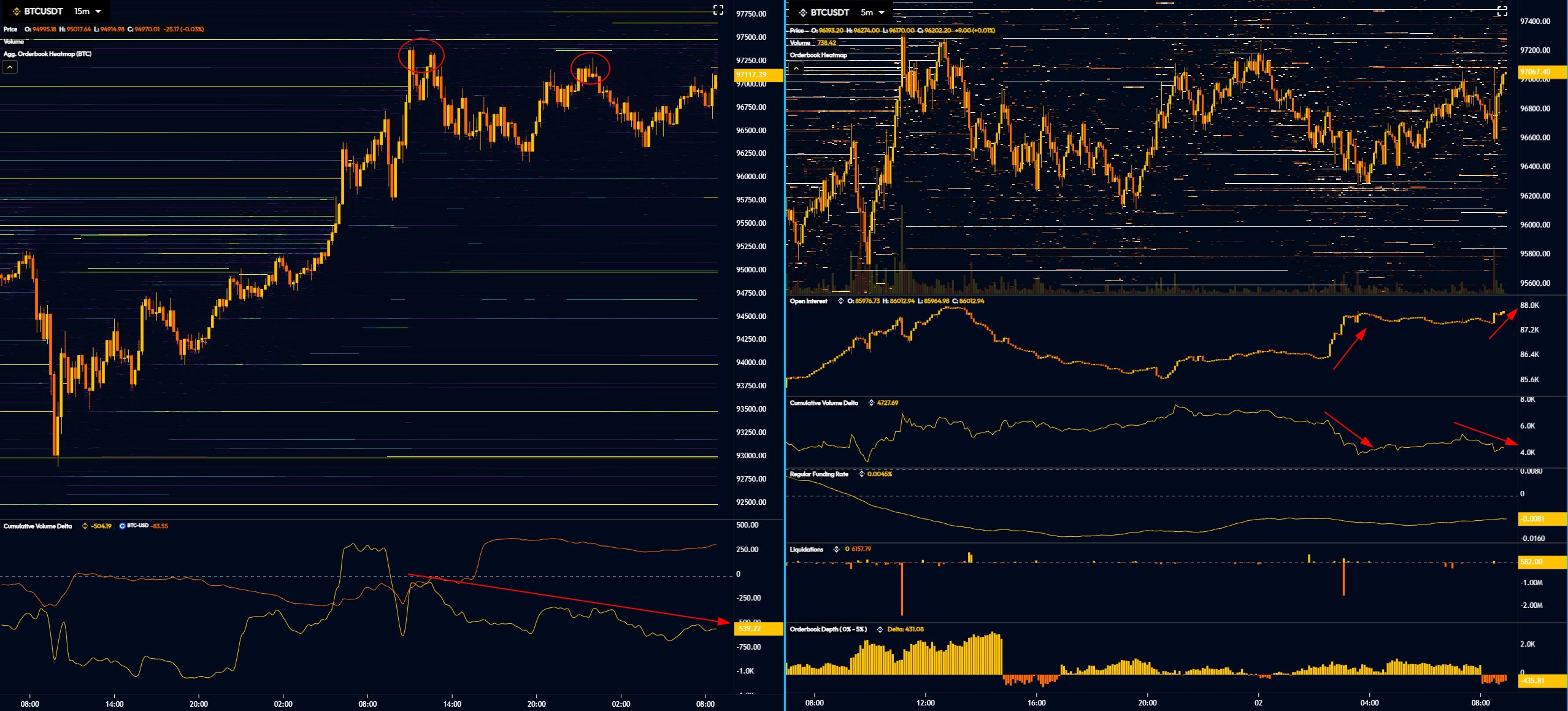 โSellers have been defending $97.2K & shorts continue to scale into price. Passive spot flow will probably again decide the trend.โ