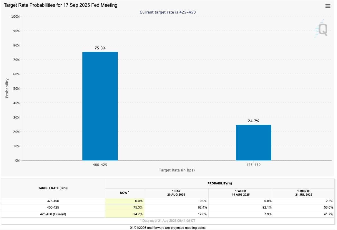 Ahead of the Federal Reserve’s Jackson Hole economic symposium, bets on interest-rate cuts at its September meeting deteriorated on the day.