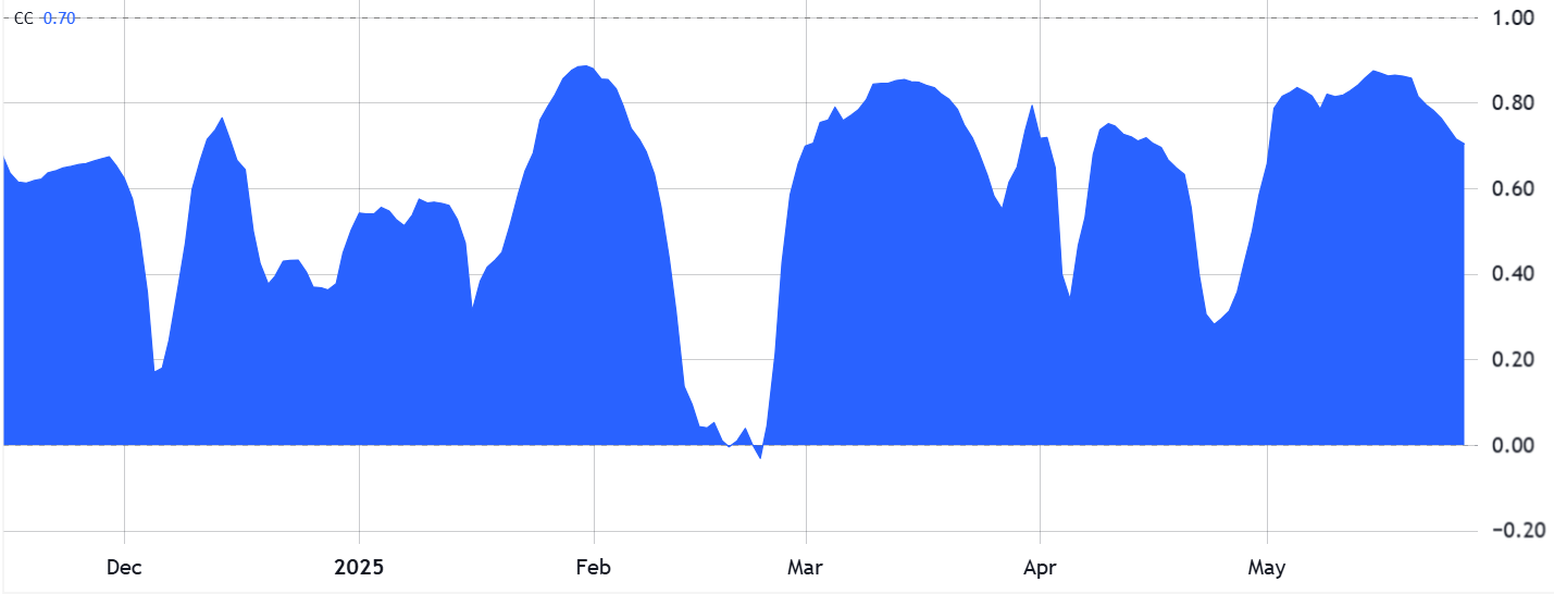 Bitcoinโs current market capitalization of $2.2 trillion now exceeds that of Google and Meta, which partially explains the $112,000 resistance level. Still, it would be inaccurate to suggest Bitcoin has decoupled from traditional markets; its 30-day correlation with the S&P 500 has remained above 70% over the past four weeks. As such, if equities enter a bear market, Bitcoin is likely to face downside as well.