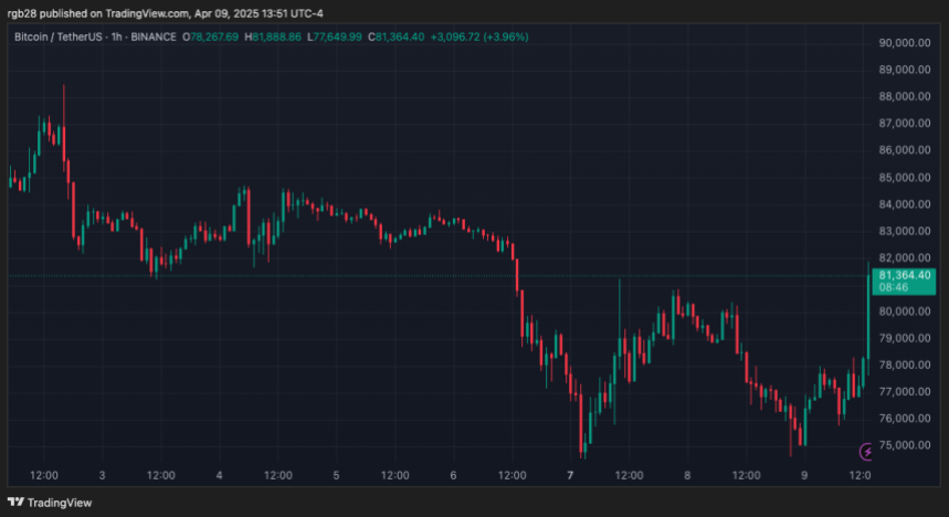 Crypto and stock prices have surged in the past hour after US President Donald Trump announced a 90-day pause for tariffs on multiple nations, except China. Bitcoin (BTC), the flagship crypto, now eyes the $83,000 barrier after jumping 6.1% following the news.