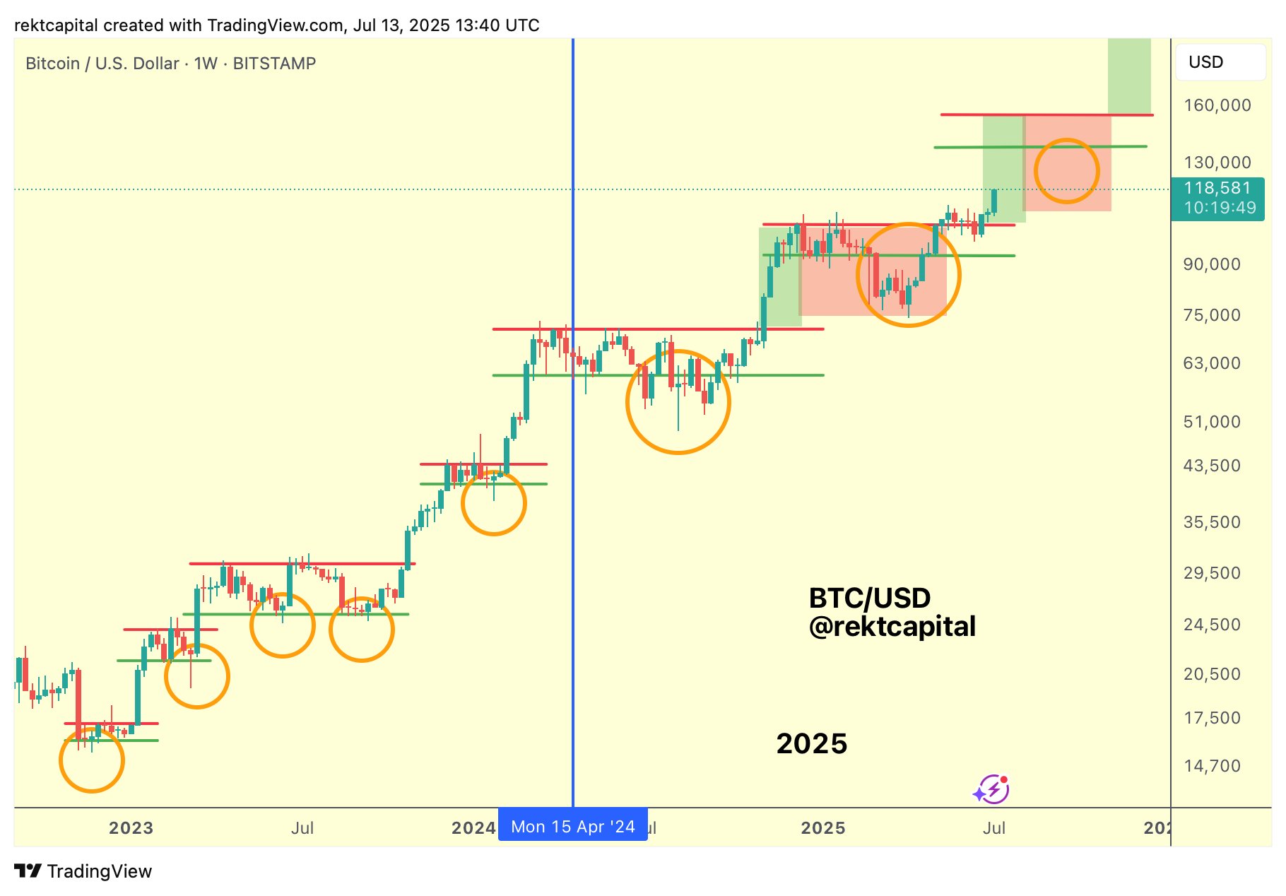โThere’s no reason to be bearish on $BTC here. The strongest weekly breakout since November 2024, which led to a 50% pump last time,โ he told X followers.