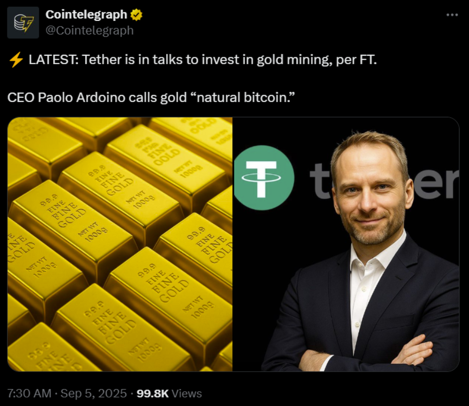 Tether has already established a notable presence in the commodities space through its tokenized gold product, Tether Gold, which has gained popularity amid the current bull market. Ardoino also confirmed the company holds more than 100 tons of physical bullion.
